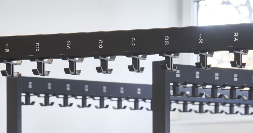 Aluminium, schwarz eloxiert, ist nicht das schwärzeste Schwarz der Welt. Dafür ist es das vielleicht schönste Schwarz in der Welt gut gestalteter Garderoben und cooler Umkleideräume. Als Material besitzt es alle traditionellen Vorteile eines rontec Produkts, in der Optik und Haptik ist es ein Statement.
